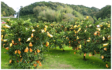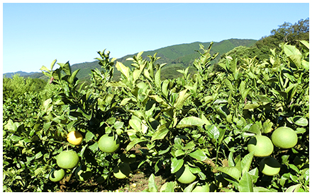 お日さまの光が降り注ぐ温暖な気候のなか、文旦たちは今日もすくすく育っています。